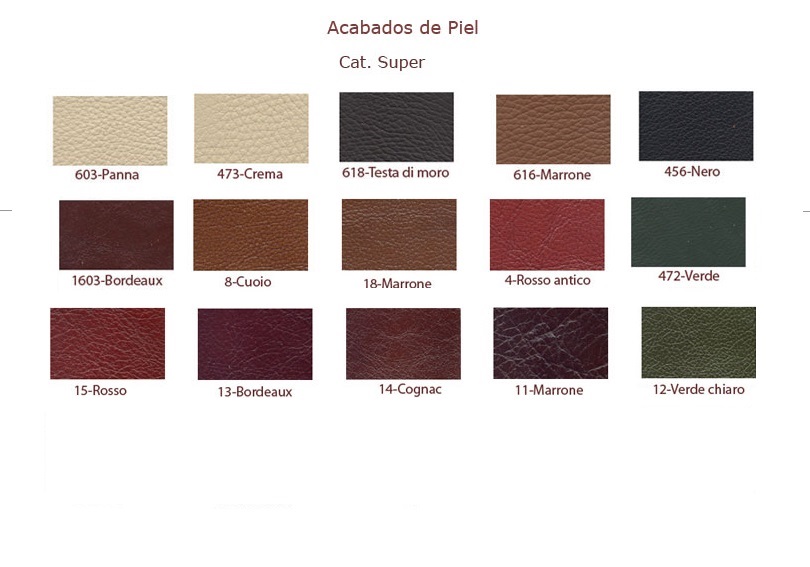 Categoría Super. Piel flor tintada con anilina curtida al cromo. Espesor: 2 mm.