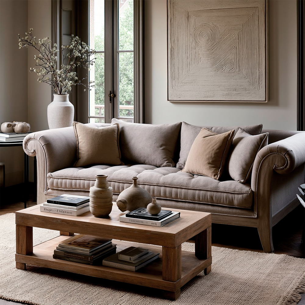 Este sofá es ideal para salones que buscan un equilibrio entre elegancia atemporal y funcionalidad moderna. Su estilo versátil se adapta perfectamente a decoraciones clásicas, rústicas o contemporáneas, convirtiéndose en el centro de atención de cualquier espacio.