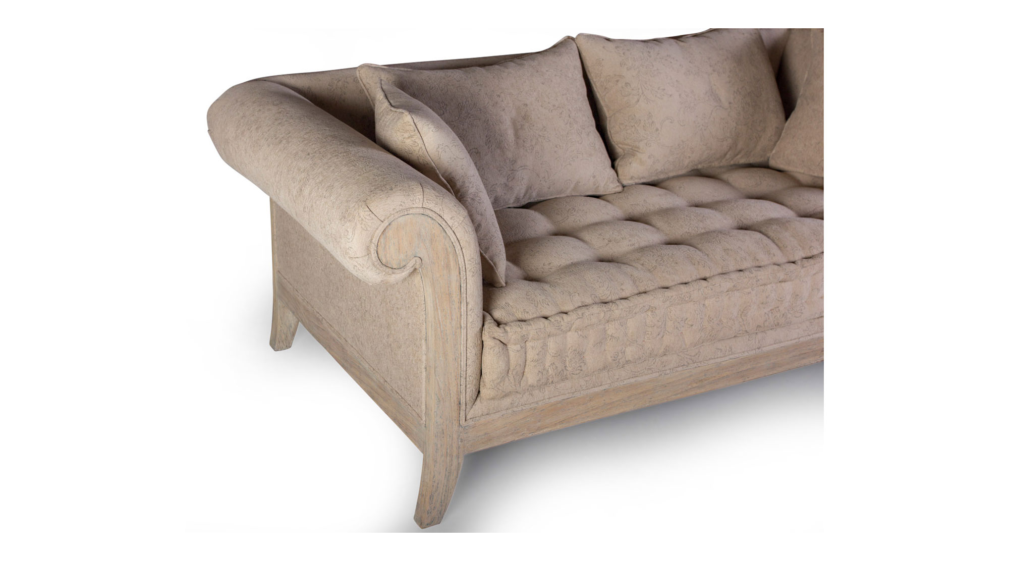 El sofá Mazan es una pieza única que combina confort, diseño clásico y calidad artesanal. Tapizado con materiales de alta durabilidad, destaca por su sólida estructura en madera de mindi maciza, cuidadosamente elaborada a mano y terminada con un acabado roble patinado que aporta calidez y personalidad a cualquier ambiente.