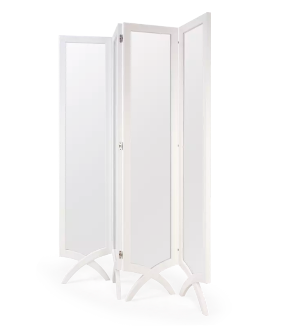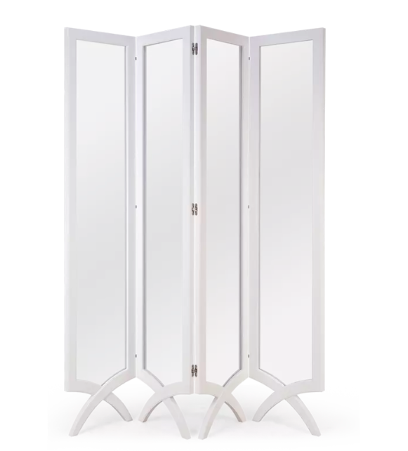 Disponible con paneles de vidrio templado o espejos, ofrece una solución funcional para dividir ambientes mientras refleja la luz y amplía visualmente el espacio. Su estructura ligera y refinada lo convierte en el complemento ideal para dormitorios, vestidores, salones o entradas con estilo clásico contemporáneo.