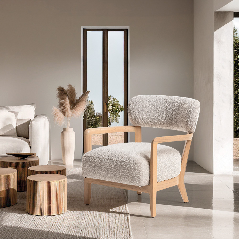 Su tapicería en color beige no solo resalta la delicadeza de la madera, sino que también proporciona una sensación de frescura y modernidad, ideal para estilos contemporáneos y luminosos. Esta butaca es perfecta para aquellos que buscan un mueble que combine artesanía tradicional con diseño moderno, creando un equilibrio entre lo clásico y lo actual.