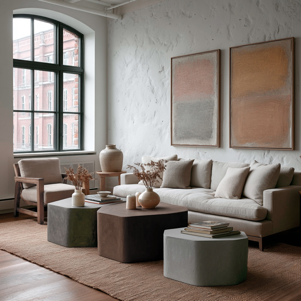 Este set de tres mesas auxiliares destaca por su diseño orgánico y su acabado artesanal en Mortex, un material de alta calidad que aporta un toque de sofisticación a cualquier espacio. Con tres tonos de gris cálido, estas mesas ofrecen una estética versátil y moderna que se adapta perfectamente a diversos estilos de decoración.