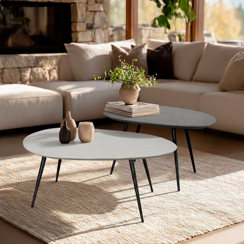 La Mesa de Centro Arcadia es un conjunto de dos mesas con acabados artesanales en Mortex en dos tonos de gris calido, cuyas formas orgánicas están inspiradas en la erosión natural de las rocas por los elementos. Estas mesas evocan la belleza de la naturaleza, con líneas fluidas y texturas sutiles que añaden carácter y profundidad visual. Ideales para espacios modernos que buscan una conexión con el entorno natural, aportando un toque de serenidad y sofisticación.