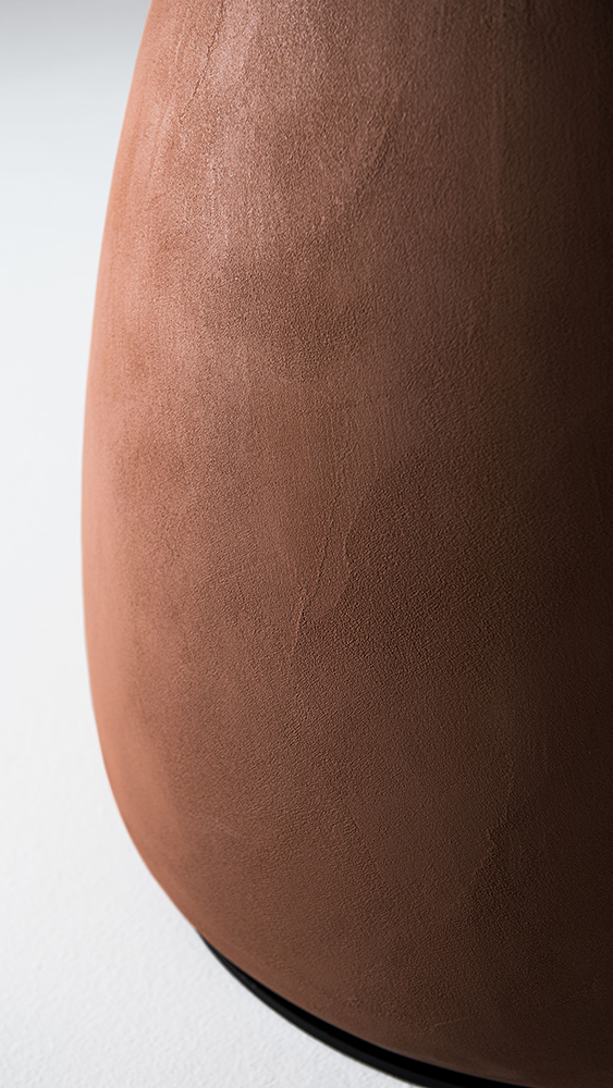 Mesa con base en polímero modelado a espátula con acabado en arcilla, disponible en tres tonalidades: Cairo (AR05), Oslo (AR09) o Marrakech (AR11). La placa de base está fabricada en metal con barniz gofrado negro (GFM73).