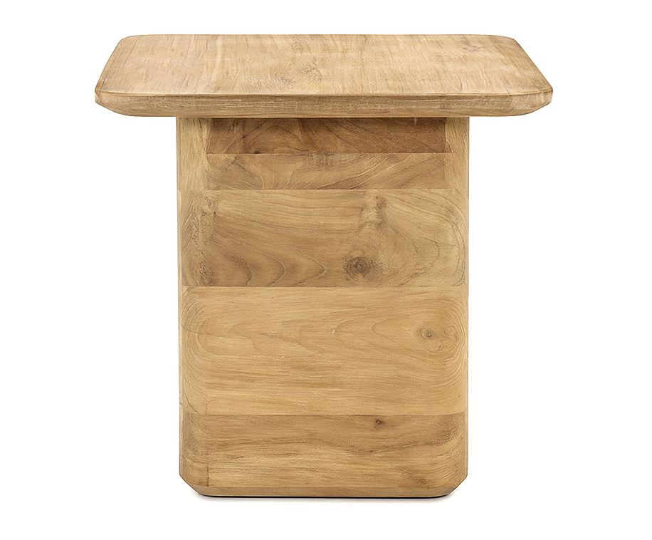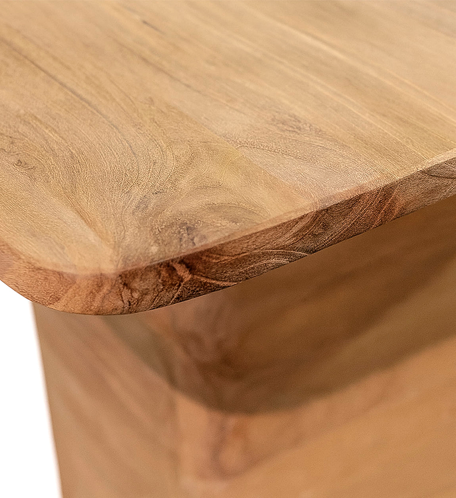 La mesa auxiliar Eyre en madera maciza de teka es el complemento perfecto para aportar calidez y estilo a cualquier rincón. Su diseño compacto y natural destaca por la belleza de sus vetas únicas. Ideal junto al sofá o como apoyo en el dormitorio. Una pieza versátil con carácter artesanal.