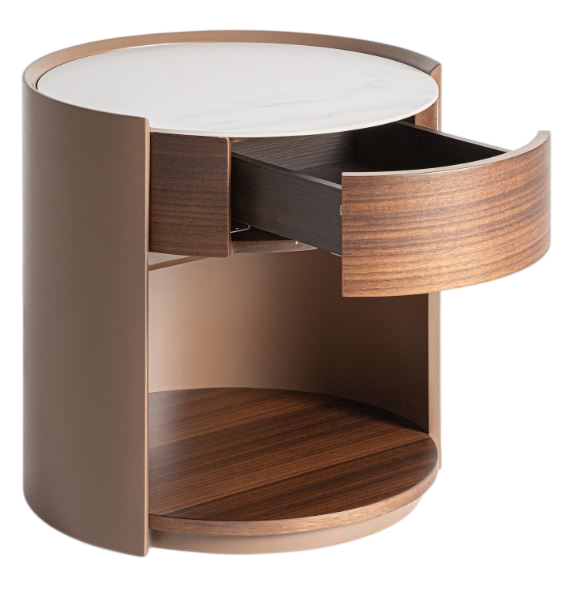 La mesita de noche Giswil es un diseño que destaca por su equilibrio entre estética natural y funcionalidad contemporánea. Combina una estructura de madera en tono marrón con detalles de eucalipto clara, creando un contraste sutil y orgánico que aporta calidez al espacio. Su sobre de piedra sinterizada blanca añade un toque elegante y resistente, dando a la pieza un acabado sofisticado y duradero. La forma redondeada y la disposición armónica de sus materiales convierten a la Giswil en un elemento práctico y con carácter, perfecto para dormitorios que buscan naturalidad sin renunciar al estilo. Con unas dimensiones de 48 cm de ancho, 48 cm de fondo y 49 cm de alto, ofrece presencia sin ocupar demasiado espacio.