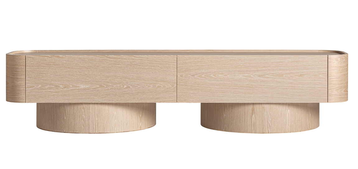 El diseño del Prayssac destaca por sus líneas suaves y formas redondeadas, lo que le otorga un carácter moderno y ligero. La parte superior del mueble presenta un delicado acabado que invita a colocar sobre ella un televisor o elementos decorativos, como plantas o libros, sin perder su elegancia.