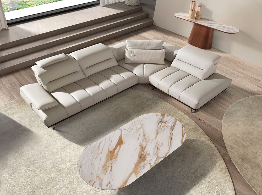 Consola curva nogal y porcelánico Alhena de lujo