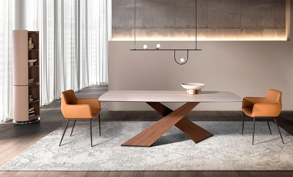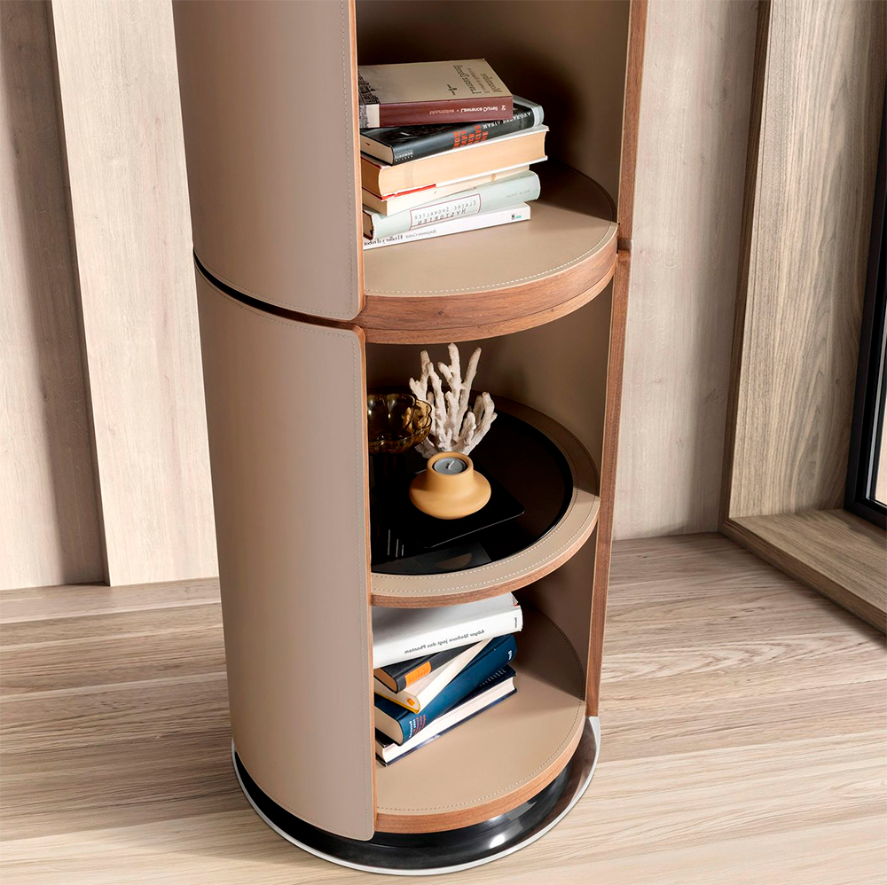Librería curva nogal y polipiel visón Lunaris de lujo