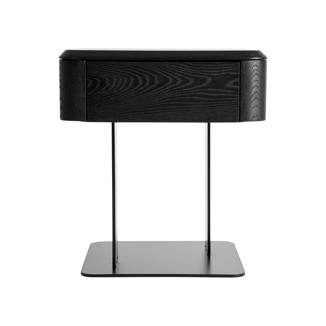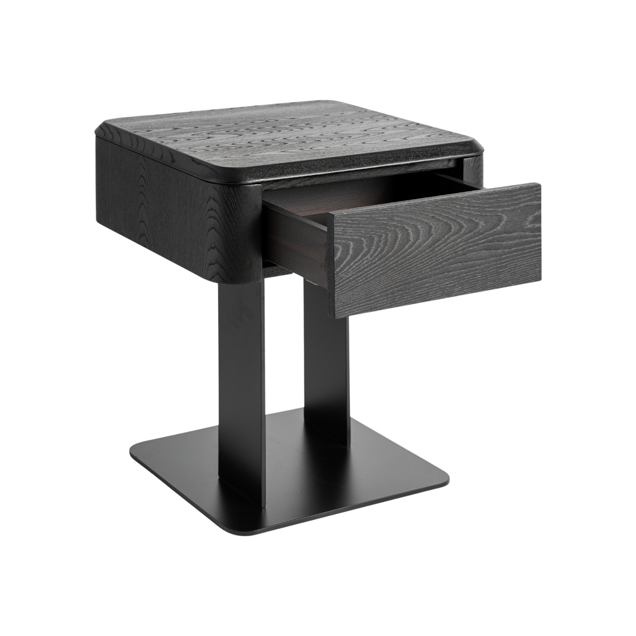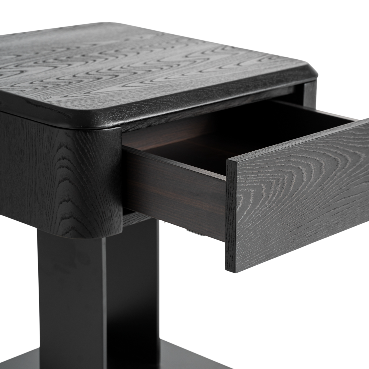 Mesa de noche metal y cajón de olmo carbón Caiza de lujo