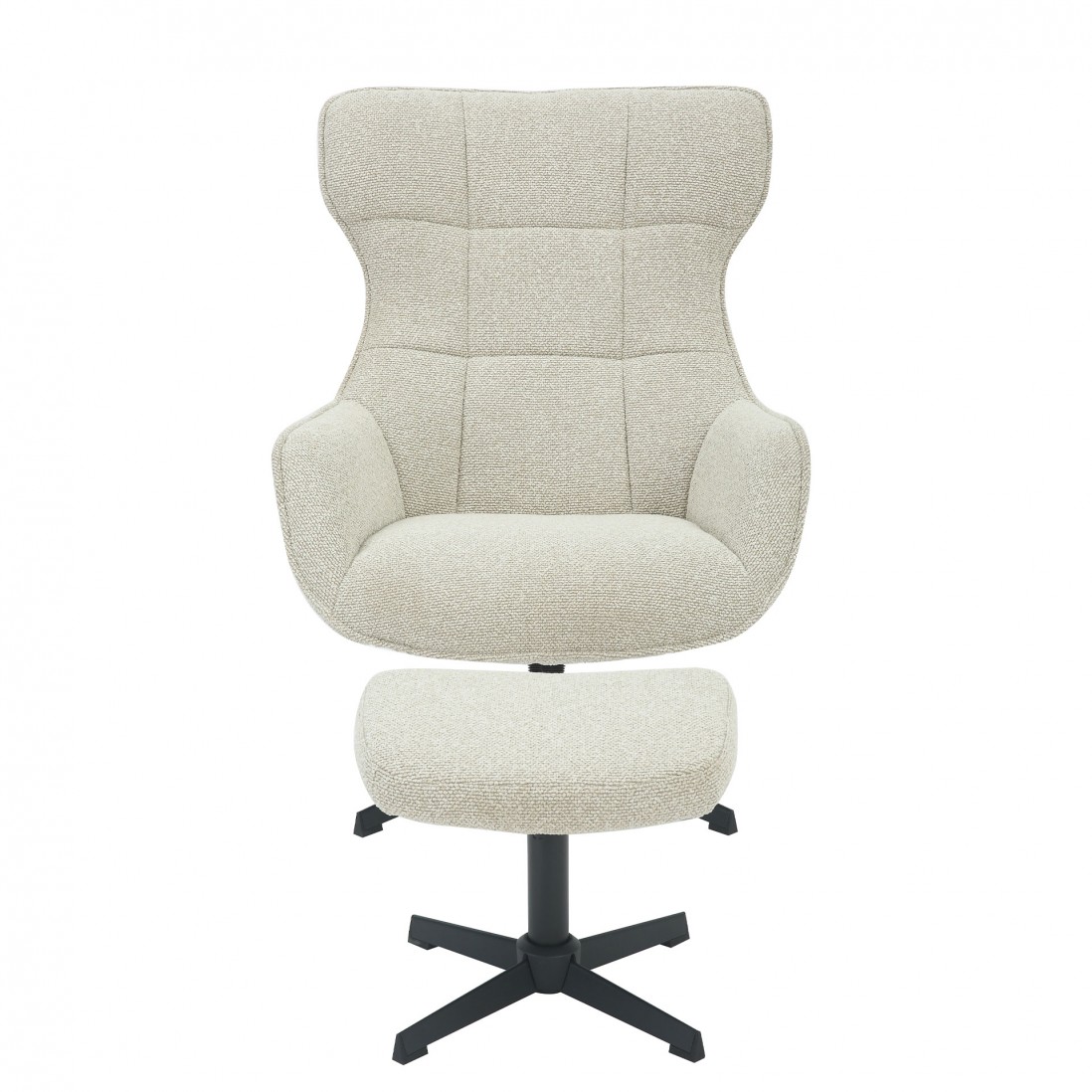 Butaca relax giratoria tapizada con puff Oslo beige de lujo